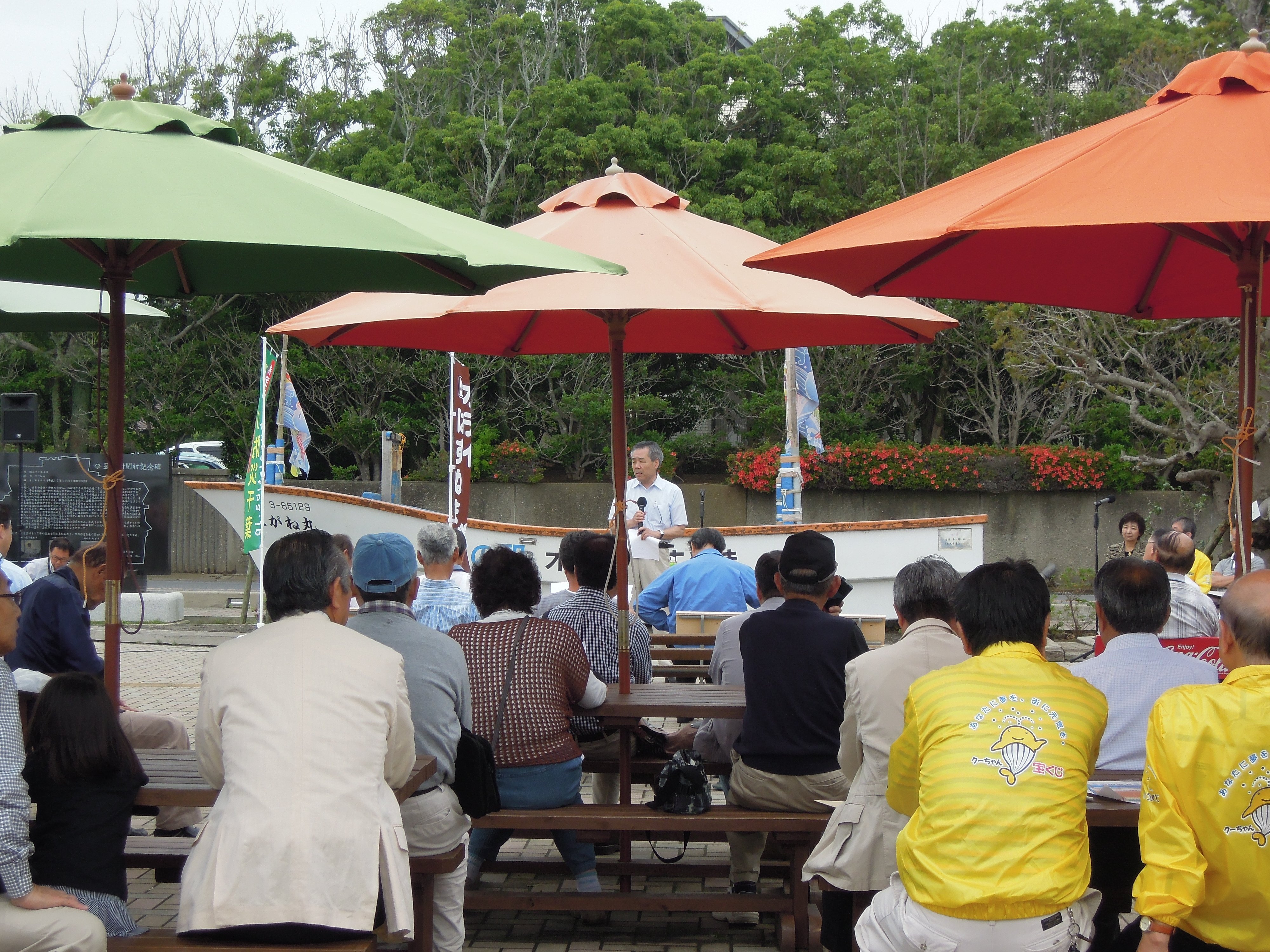 「オライはすぬま」でのミニ防災セミナーは、初めて屋外で開催、参加者が大勢集まった